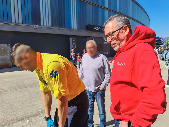 Un dels moments més rellevants de la jornada es va produir quan vam haver d’intervenir en una situació real. Un aficionat va patir un desmai per una baixada de tensió a les immediacions de l’esdeveniment.